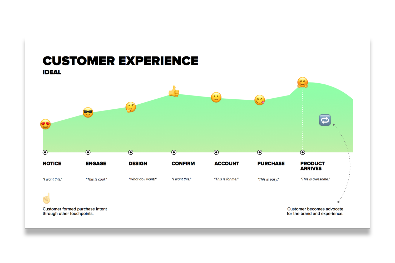 As we progressed from study to design solutions, a high-level experience flow looked at key touchpoints in the customer journey to frame up strategic and design objectives.